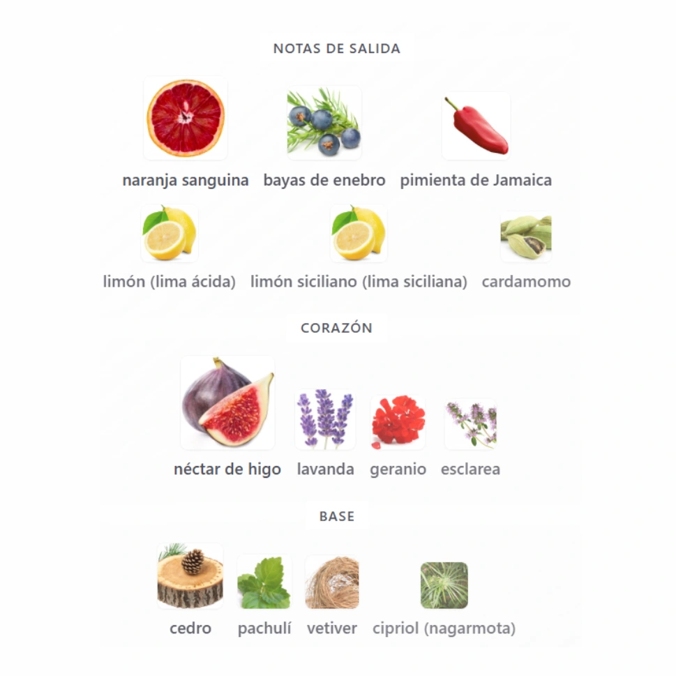 El higo aporta una dulzura cremosa y moderna, la lavanda y la esclarea refuerzan el lado aromático, y el geranio añade un toque fresco y sofisticado.