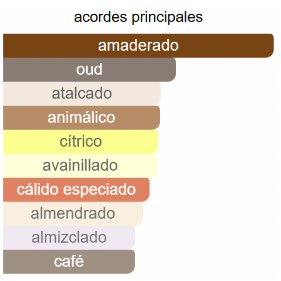 El secado es oscuro, cálido y majestuoso. El oud y el musgo de roble dan profundidad terrosa, mientras que el café y la vainilla agregan un contraste gourmand exquisito. El ámbar y el sándalo envuelven todo con suavidad, mientras el pachulí y la pimienta rosa aportan textura y carácter.