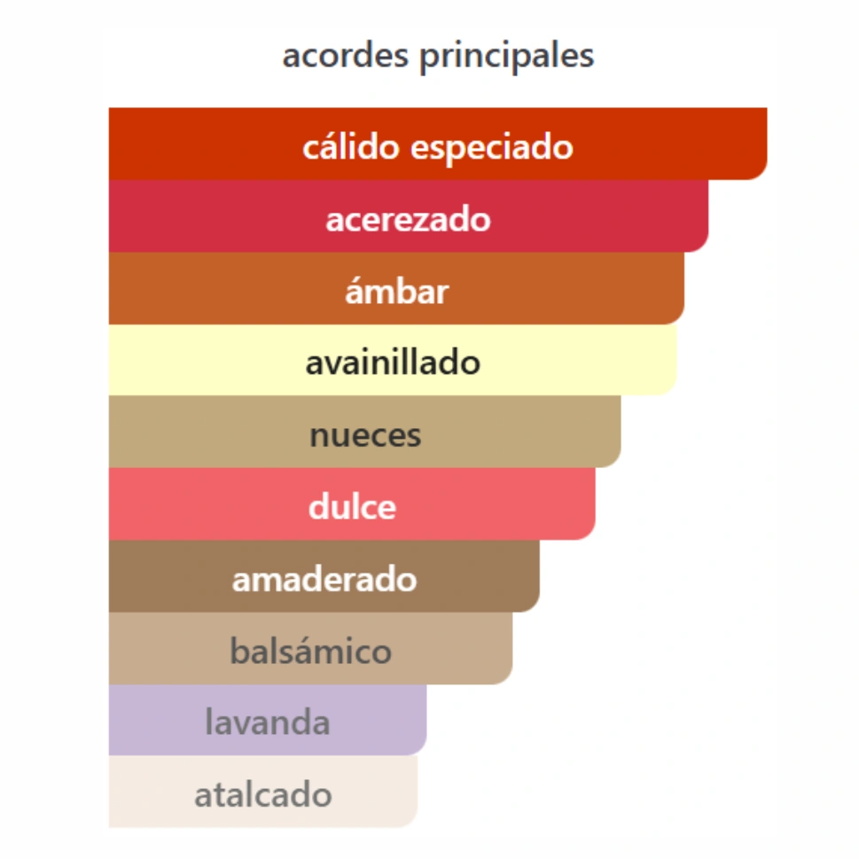 Las especias añaden profundidad y carácter seductor, mientras que la lavanda introduce un contraste limpio y elegante que mantiene la fragancia equilibrada.