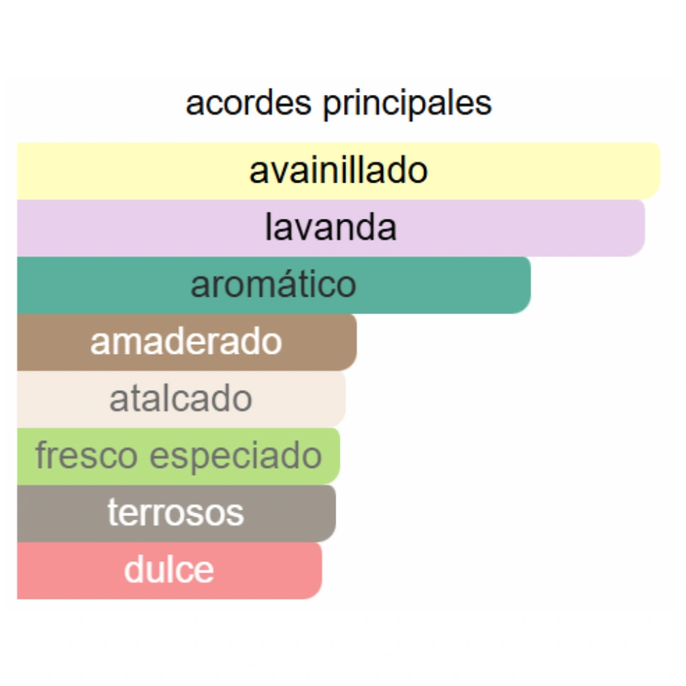 Lavanda — un contraste aromático que aporta sofisticación y frescura a la composición, equilibrando la dulzura con elegancia clásica.